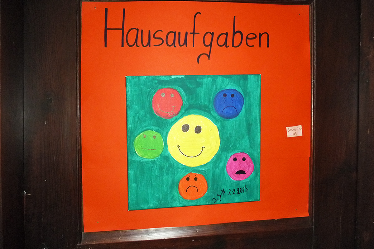 Nach dem Unterricht und einer kleinen Pause machen die Kinder gemeinsam mit Lehrkräften und Betreuer*innen ihre Hausaufgaben.